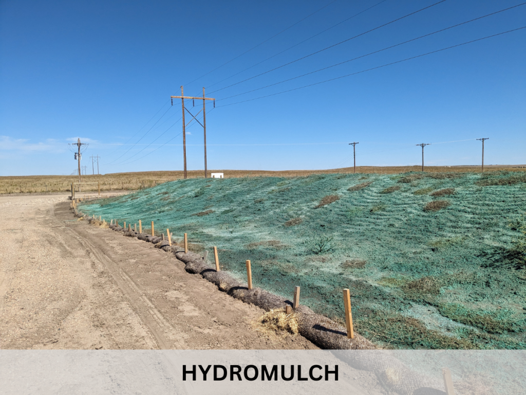 Hydromulch – a slurry of water, seed, mulch, and stabilizing agents sprayed over bare soil to promote vegetation growth and reduce erosion, particularly on slopes.Vehicle Tracking Controls – used at site entries/exits to prevent dirt, mud, and other pollutants from being carried onto public roads by vehicles. Various VTC methods can include plastic FODs, rumble grates, rock, or mats.